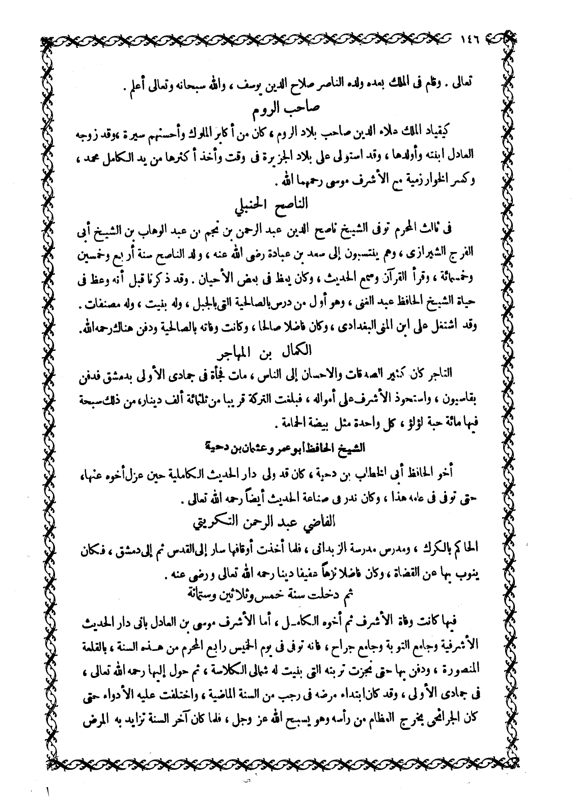 تَعَالَى. وَقَامَ فِي الْمُلْكِ بَعْدَهُ وَلَدُهُ النَّاصِرُ صلاح الدين يوسف، والله سبحانه وتعالى أعلم.