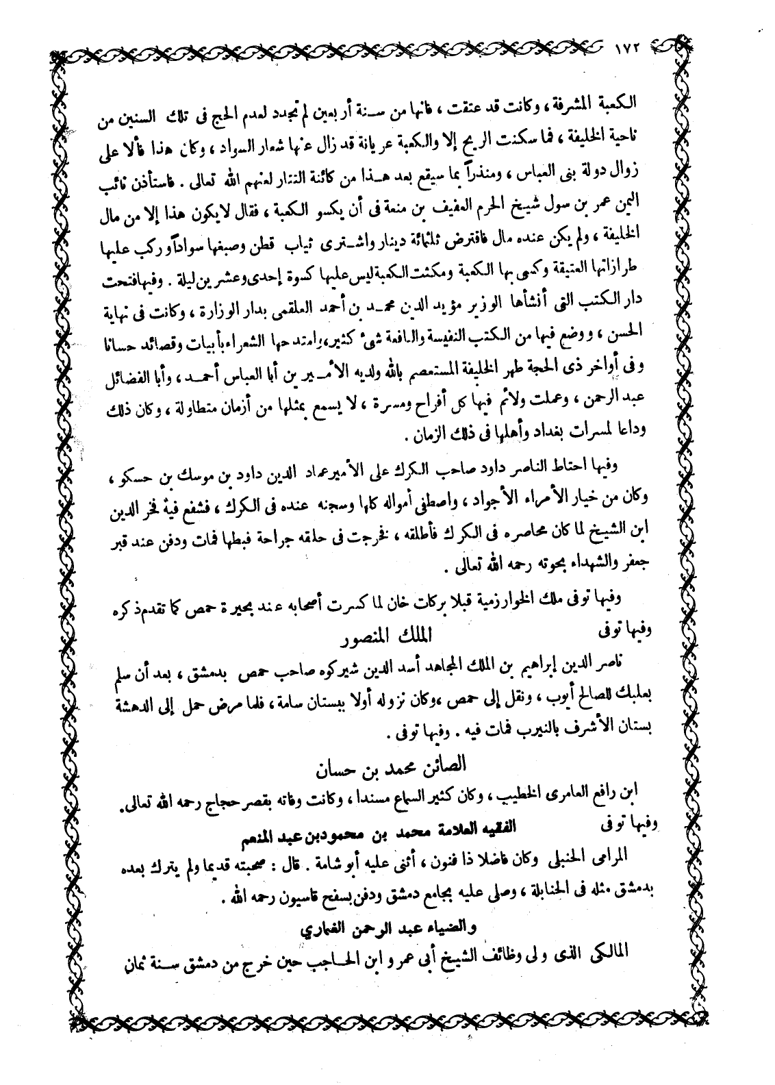 وَفِيهَا تُوُفِّيَ الْفَقِيهُ الْعَلَّامَةُ مُحَمَّدُ بْنُ مَحْمُودِ بن عبد المنعم