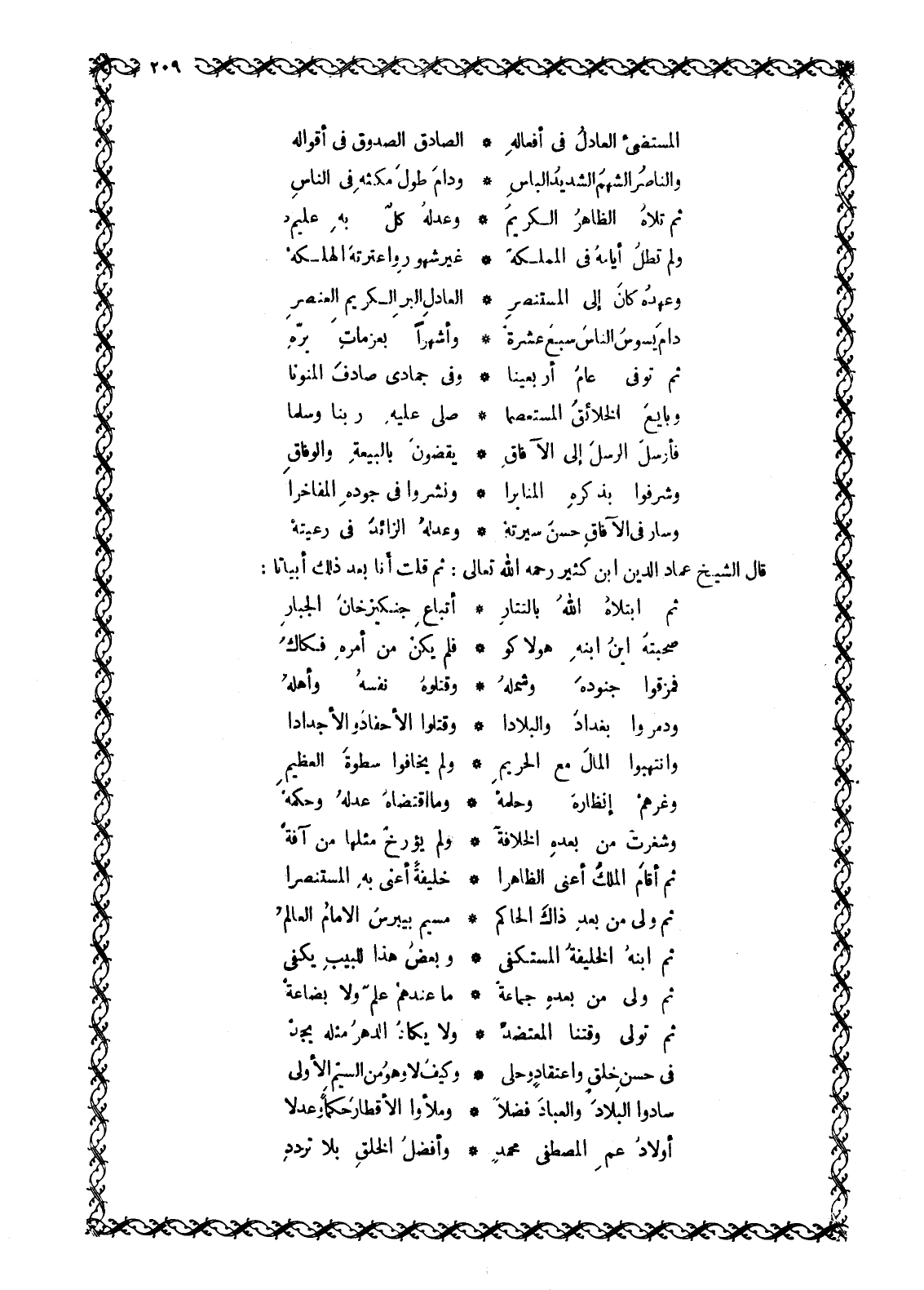 قَالَ الشَّيْخُ عِمَادُ الدين ابن كثير رحمه الله تعالى: ثُمَّ قُلْتُ أَنَا بَعْدَ ذَلِكَ أَبْيَاتًا: