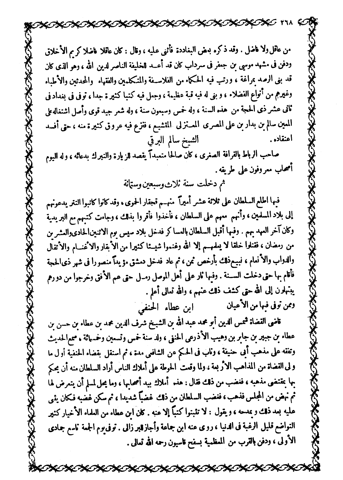 ثُمَّ دَخَلَتْ سَنَةُ ثَلَاثٍ وسبعين وستمائة