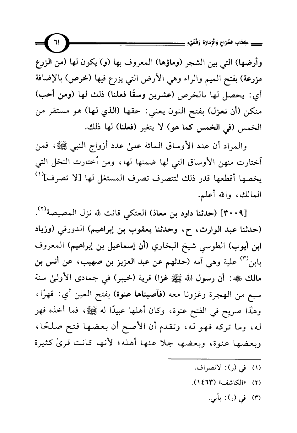 والمراد أن عدد الأوساق المائة على عدد أزواج النبي - صلى الله عليه وسلم -، فمن اختارت منهن الأوساق التي لها ضمنها لها، ومن اختارت النخل التي يخصها أقطعها قدر ذلك لتتصرف تصرف المستغل لها [لا تصرف] (¬1) المالك، والله أعلم.