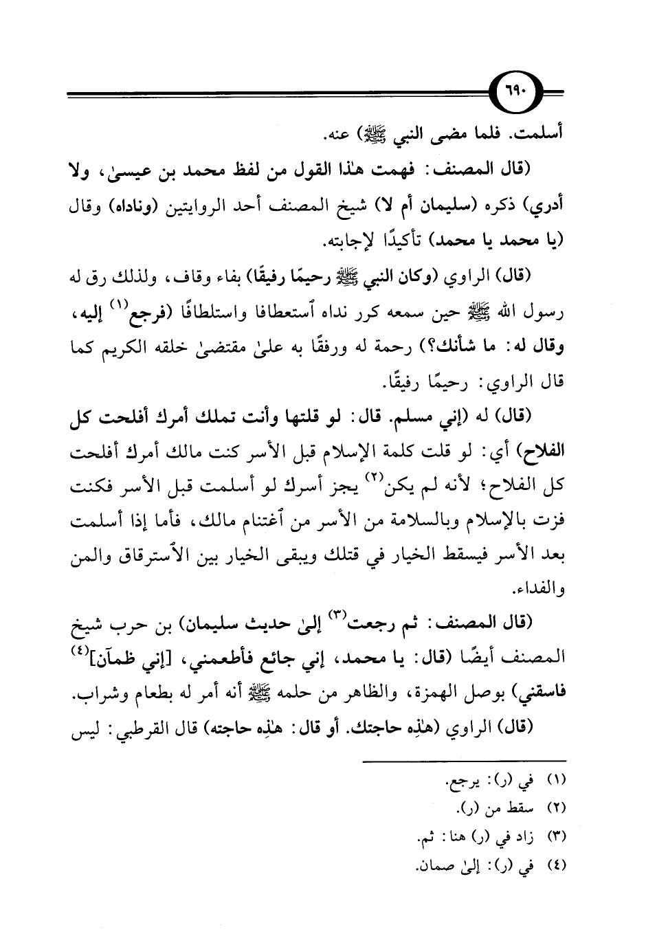 (قال المصنف: ثم رجعت (¬3) إلى حديث سليمان) بن حرب شيخ المصنف أيضًا (قال: يا محمد، إني جائع فأطعمني، [إني ظمآن] (¬4) فاسقني) بوصل الهمزة، والظاهر من حلمه - صلى الله عليه وسلم - أنه أمر له بطعام وشراب.