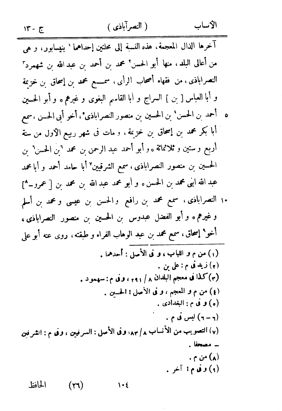 [7] التصويب من الأنساب 8/ 83، وفي الأصل: السرفيين، وفي م: الشرفين- مصحفا.