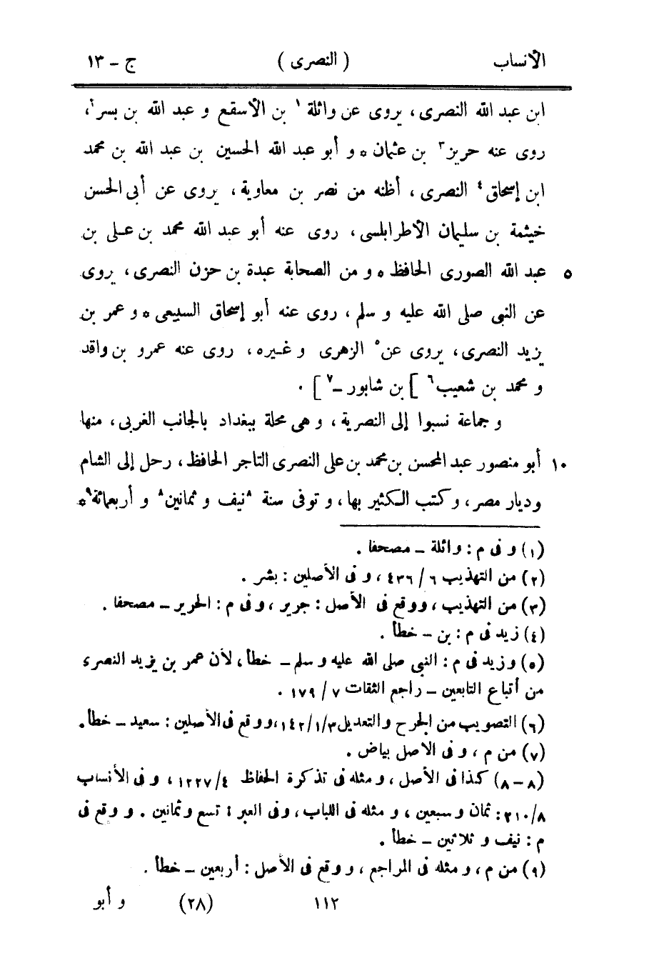 وجماعة نسبوا إلى النصرية، وهي محلة ببغداد بالجانب الغربي، منها أبو منصور عبد المحسن بن محمد بن على النصري التاجر الحافظ، رحل إلى الشام وديار مصر، وكتب الكثير بها، وتوفى سنة [8] نيف وثمانين [8] وأربعمائة [9]