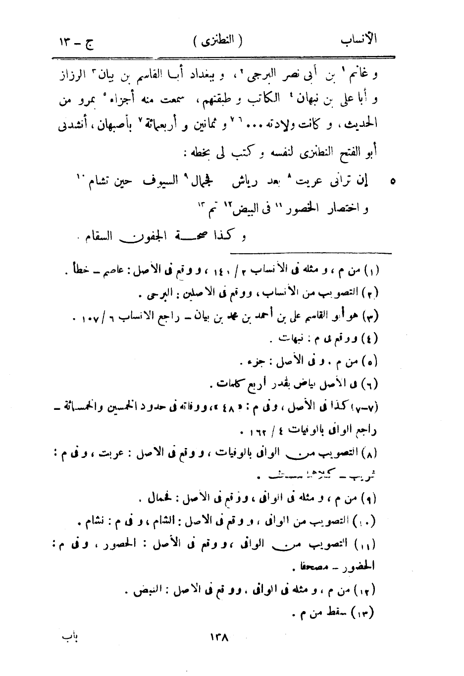 [3] هو أبو القاسم على بن أحمد بن محمد بن بيان- راجع الأنساب 6/ 107.