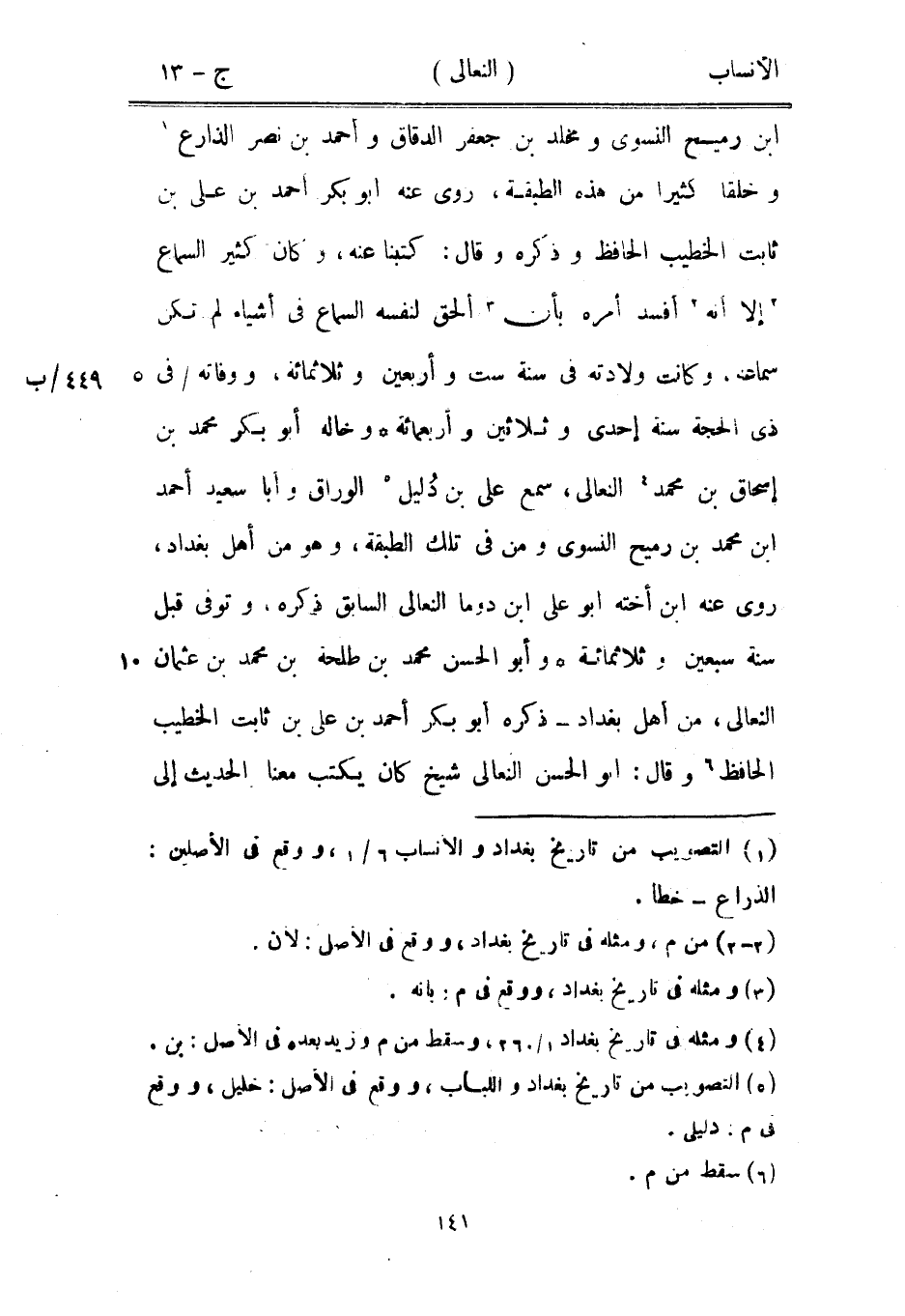 [1] التصويب من تاريخ بغداد والأنساب 6/ 1، ووقع في الأصلين: