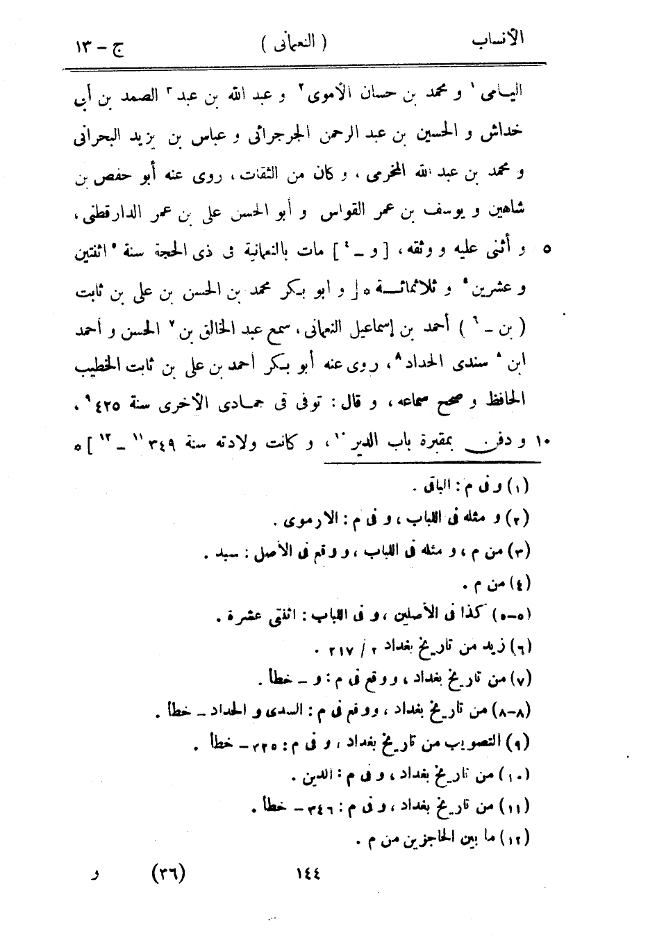 اليامى [1] ومحمد بن حسان الأموي [2] وعبد الله بن عبد [3] الصمد بن أبى خداش والحسين بن عبد الرحمن الجرجرائى وعباس بن يزيد البحراني ومحمد بن عبد الله المخرمي، وكان من الثقات، روى عنه أبو حفص بن شاهين ويوسف بن عمر القواس وأبو الحسن على بن عمر الدارقطنيّ، وأثنى عليه ووثقه، [و-[4]] مات بالنعمانيّة في ذي الحجة سنة [5] اثنتين وعشرين [5] وثلاثمائة [وأبو بكر محمد بن الحسن بن على بن ثابت (بن-[6] ) أحمد بن إسماعيل النعماني، سمع عبد الخالق بن [7] الحسن وأحمد ابن [8] سندي الحداد [8] ، روى عنه أبو بكر أحمد بن على بن ثابت الخطيب الحافظ وصحح سماعه، وقال: توفى في جمادى الأخرى سنة 425 [9] ، ودفن بمقبرة باب الدير [10] ، وكانت ولادته سنة 349 [11]-[12]]