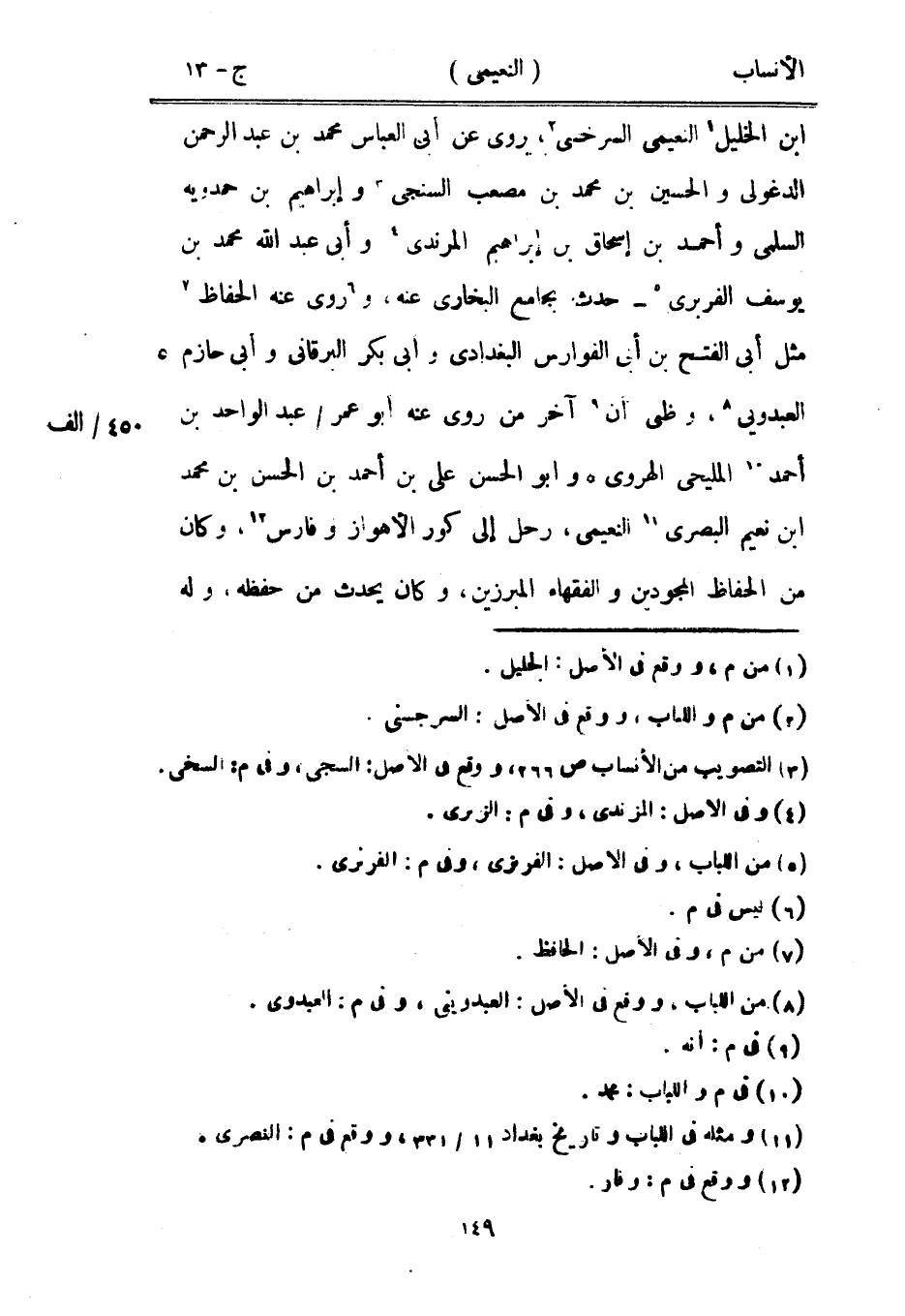 ابن الخليل [1] النعيمي السرخسي [2] ، يروى عن أبى العباس محمد بن عبد الرحمن الدغولى والحسين بن محمد بن مصعب السنجى [3] وإبراهيم بن حمدويه السلمي وأحمد بن إسحاق بن إبراهيم المرندي [4] وأبى عبد الله محمد بن يوسف الفربري [5]- حدث بجامع البخاري عنه، و [6] روى عنه الحفاظ [7] مثل أبى الفتح بن أبى الفوارس البغدادي وأبى بكر البرقاني وأبى حازم العبدويى [8] ، وظني أن [9] آخر من روى عنه أبو عمر/ عبد الواحد بن أحمد [10] المليحي الهروي وأبو الحسن على بن أحمد بن الحسن بن محمد ابن نعيم البصري [11] النعيمي، رحل إلى كور الأهواز وفارس [12] ، وكان من الحفاظ المجودين والفقهاء المبرزين، وكان يحدث من حفظه، وله