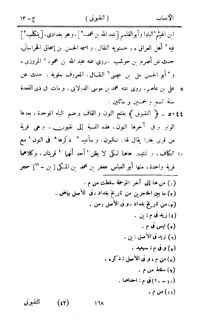 بفتح النون والقاف وضم الباء الموحدة، بعدها الواو وفي آخرها النون، هذه النسبة إلى نقبون، وهي قرية من قرى بخارا يقال لها: نكبون، وسأعيد [7] ذكرها [8] في النون [9] مع الكاف، وكتبت هاهنا لكي لا يظن [10] أحد أنهما [10] قريتان، وكلاهما قرية واحدة، منها أبو العباس جعفر بن محمد بن المكيّ [بن-[11]] حجر
