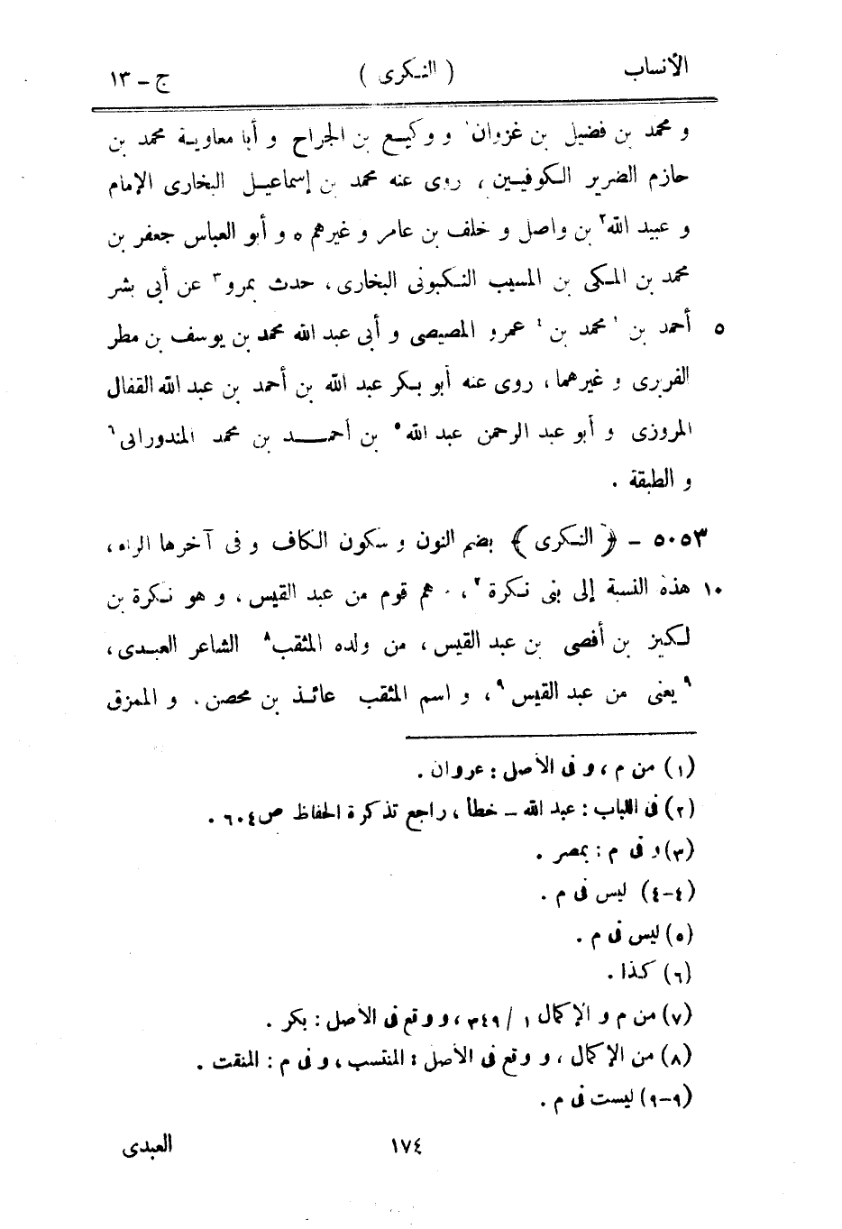 بضم النون وسكون الكاف وفي آخرها الراء، هذه النسبة إلى بنى نكرة [7] ، وهم قوم من عبد القيس، وهو نكرة بن لكيز بن أفصى بن عبد القيس، من ولده المثقب [8] الشاعر العبديّ، [9] يعنى من عبد القيس [9] ، واسم المثقب عائذ بن محصن، والممزق
