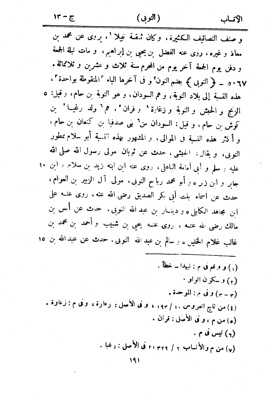 بضم النون [2] وفي آخرها الباء [3] المنقوطة بواحدة [3] ، هذه النسبة إلى بلاد النوبة، وهم السودان، وهو النوبة بن حام، وقيل: