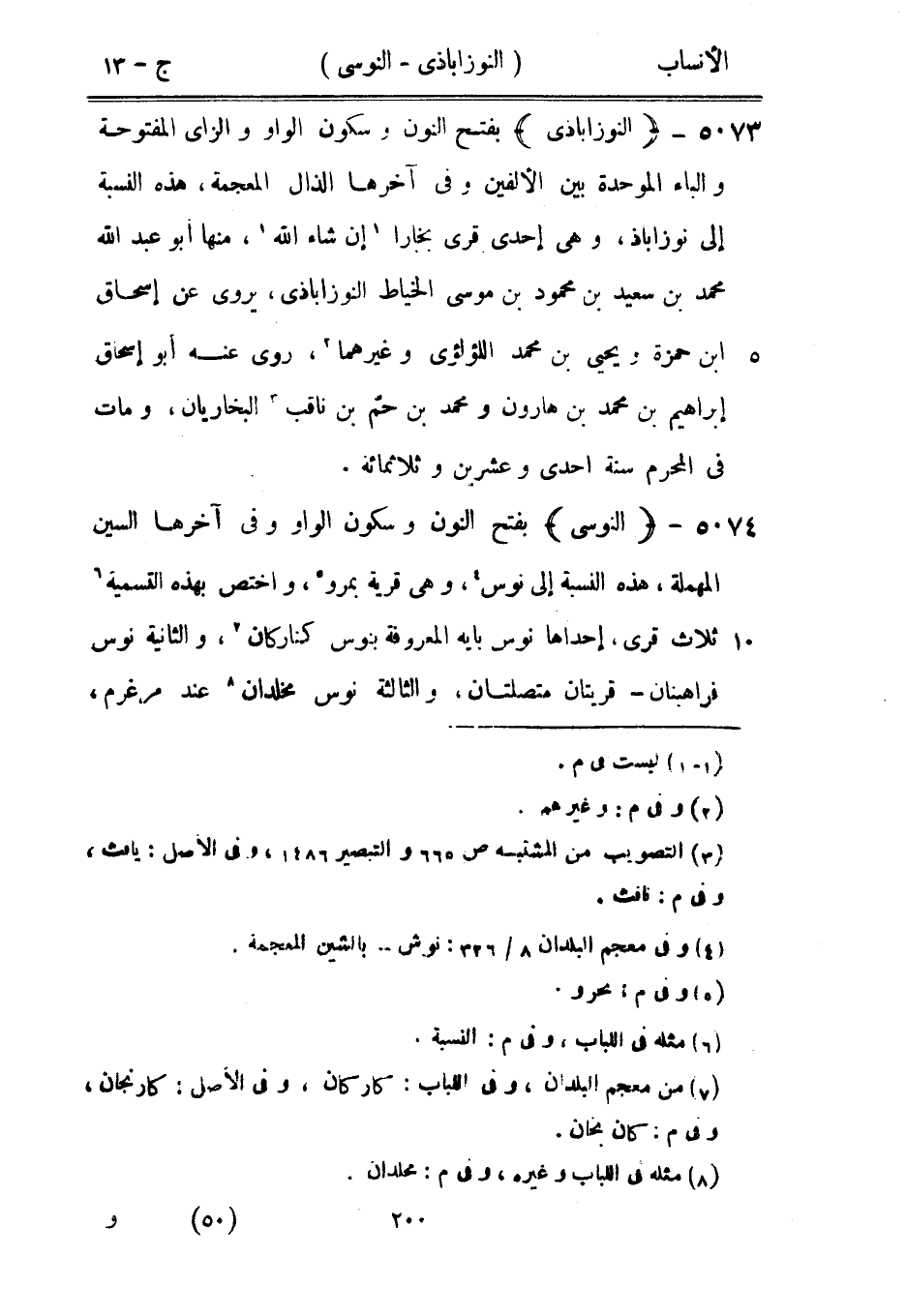 بفتح النون وسكون الواو وفي آخرها السين المهملة، هذه النسبة إلى نوس [4] ، وهي قرية بمرو [5] ، واختص بهذه التسمية [6] ثلاث قرى، إحداها نوس بايه المعروفة بنوس كناركان [7] ، والثانية نوس فراهينان- قريتان متصلتان، والثالثة نوس مخلدان [8] عند مرغرم،
