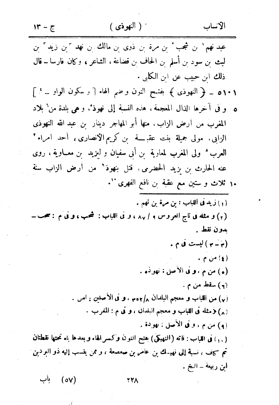 [10] في اللباب: فاته (النهيكي) بفتح النون وكسر الهاء وبعدها ياء تحتها نقطتان تم كاف، نسبة إلى نهيك بن عامر بن صعصعة، وممن ينسب إليه ذو البردين ابن ربيعة- إلخ.