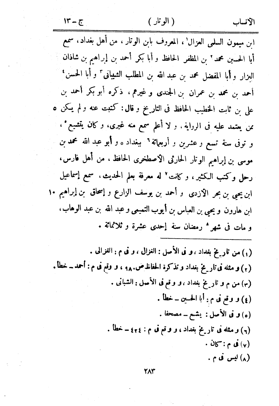 [2] ومثله في تاريخ بغداد وتذكرة الحفاظ ص 980، ووقع في م: أحمد- خطأ.