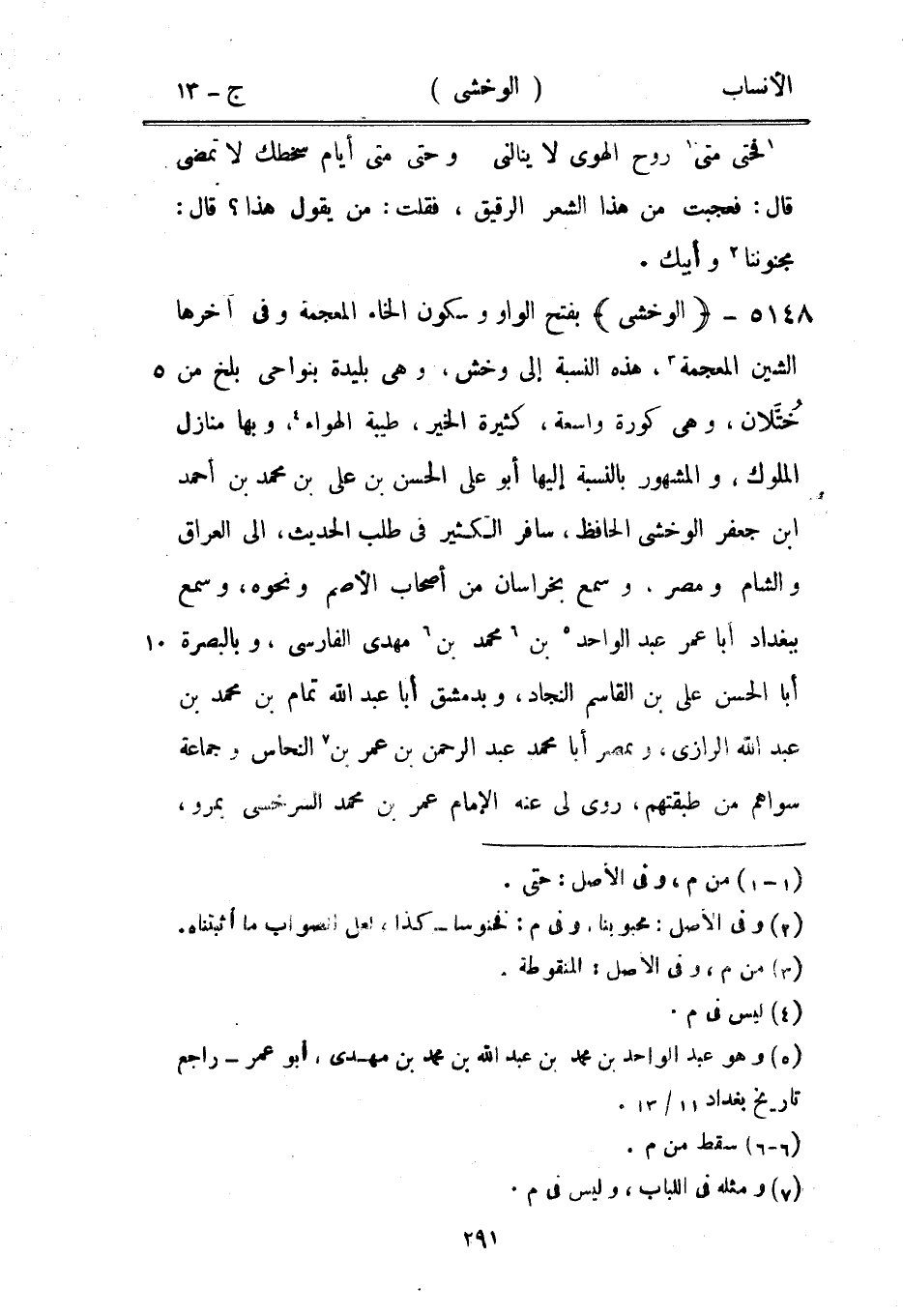 بفتح الواو وسكون الخاء المعجمة وفي آخرها الشين المعجمة [3] ، هذه النسبة إلى وخش، وهي بليدة بنواحي بلخ من ختّلان، وهي كورة واسعة، كثيرة الخير، طيبة الهواء [4] ، وبها منازل الملوك، والمشهور بالنسبة إليها أبو على الحسن بن على بن محمد بن أحمد ابن جعفر الوخشى الحافظ، سافر الكثير في طلب الحديث، الى العراق والشام ومصر، وسمع بخراسان من أصحاب الأصم ونحوه، وسمع بغداد أبا عمر عبد الواحد [5] بن [6] محمد بن [6] مهدي الفارسي، وبالبصرة أبا الحسن على بن القاسم النجاد، وبدمشق أبا عبد الله تمام بن محمد بن عبد الله الرازيّ، وبمصر أبا محمد عبد الرحمن بن عمر بن [7] النحاس وجماعة سواهم من طبقتهم، روى لي عنه الإمام عمر بن محمد السرخسي بمرو،