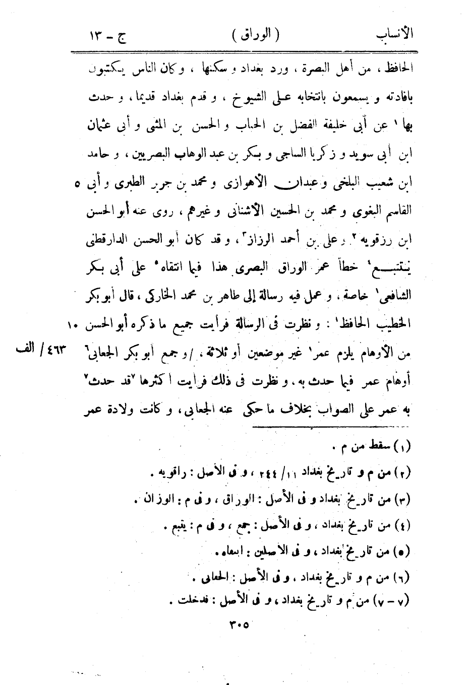 [3] من تاريخ بغداد وفي الأصل: الوراق، وفي م: الوزان.