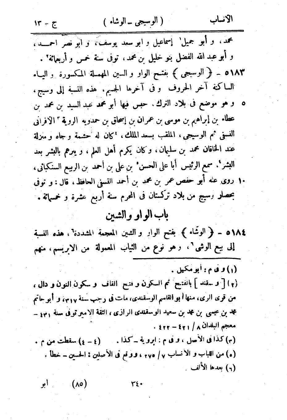 [2] [وسقند] بالفتح ثم السكون وفتح القاف وسكون النون ودال، من قرى الري، منها أبو القاسم الوسقندي، مات في رجب سنة 317، وأبو حاتم محمد بن عيسى بن محمد بن سعيد الوسقندي الرازيّ، الثقة الأمير توفى سنة 431- معجم البلدان 8/ 421- 422.
