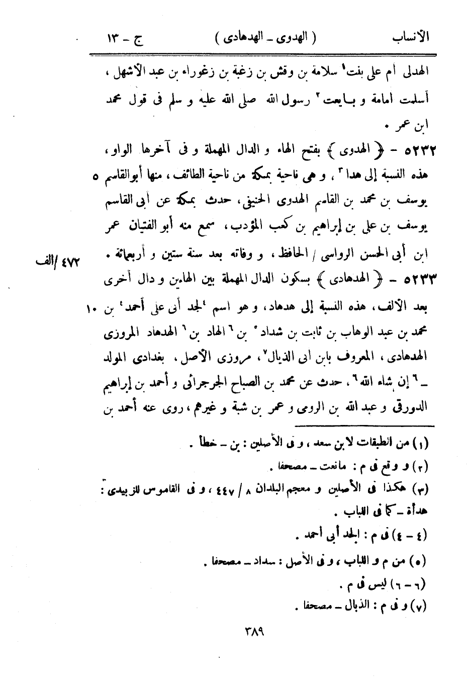 بفتح الهاء والدال المهملة وفي آخرها الواو، هذه النسبة إلى هذا [3] ، وهي ناحية بمكة من ناحية الطائف، منها أبو القاسم يوسف بن محمد بن القاسم الهدوى الحنيفي، حدث بمكة عن أبى القاسم يوسف بن على بن إبراهيم بن كعب المؤدب، سمع منه أبو الفتيان عمر ابن أبى الحسن الرواسي/ الحافظ، ووفاته بعد سنة ستين وأربعمائة.