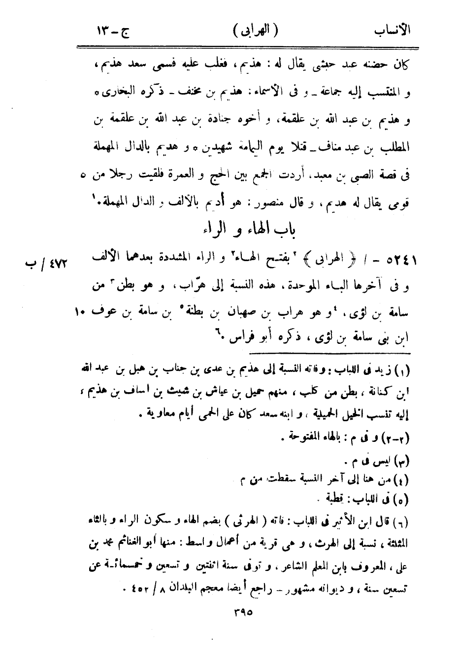 [2] بفتح الهاء [2] والراء المشددة بعدهما الألف وفي آخرها الباء الموحدة، هذه النسبة إلى هرّاب، وهو بطن [3] من سامة بن لؤيّ، [4] وهو هراب بن صهبان بن بطنة [5] بن سامة بن عوف ابن بنى سامة بن لؤيّ، ذكره أبو فراس. [6]