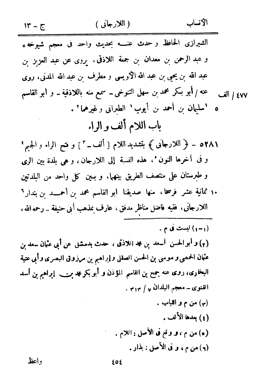 بتشديد اللام [ألف-[3]] وفتح الراء والجيم [4] وفي آخرها النون [5] ، هذه النسبة إلى اللارجان، وهي بلدة بين الري وطبرستان على منتصف الطريق بينهما، وبين كل واحد من البلدتين ثمانية عشر فرسخا، منها صديقنا ابو القاسم محمد بن أحمد بن بندار [6] اللارجاني، فقيه فاضل مناظر مدقق، عارف بمذهب أبى حنيفة- رحمه الله،