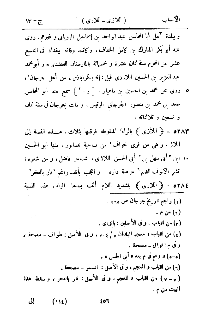 بالراء [3] المنقوطة فوقها بثلاث، هذه النسبة إلى اللاژ، وهي من قرى خواف [4] من ناحية نيسابور، منها ابو الحسين ابن [5] أبى سهل بن [5] أبى الحسن اللاژى، شاعر فاضل، ومن شعره: