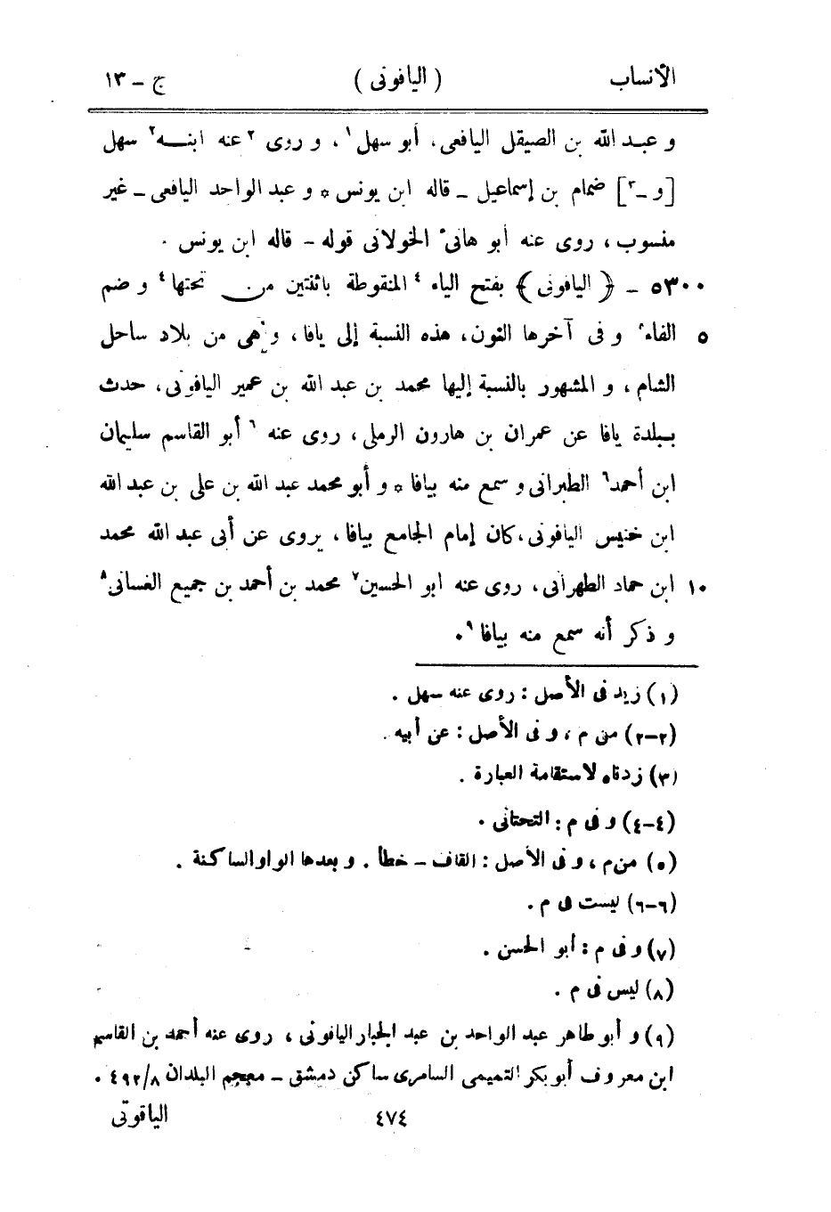 [9] وأبو طاهر عبد الواحد بن عبد الجبار اليافونى، روى عنه أحمد بن القاسم ابن معروف أبو بكر التميمي السامري ساكن دمشق- معجم البلدان 8/ 492.