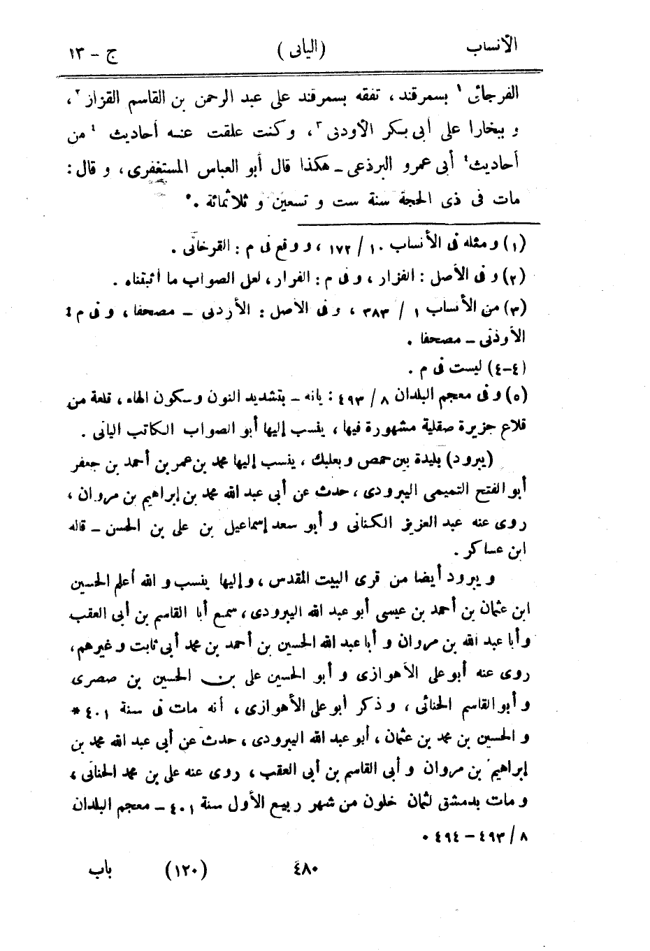 [3] من الأنساب 1/ 383، وفي الأصل: الأردني- مصحفا، وفي م: