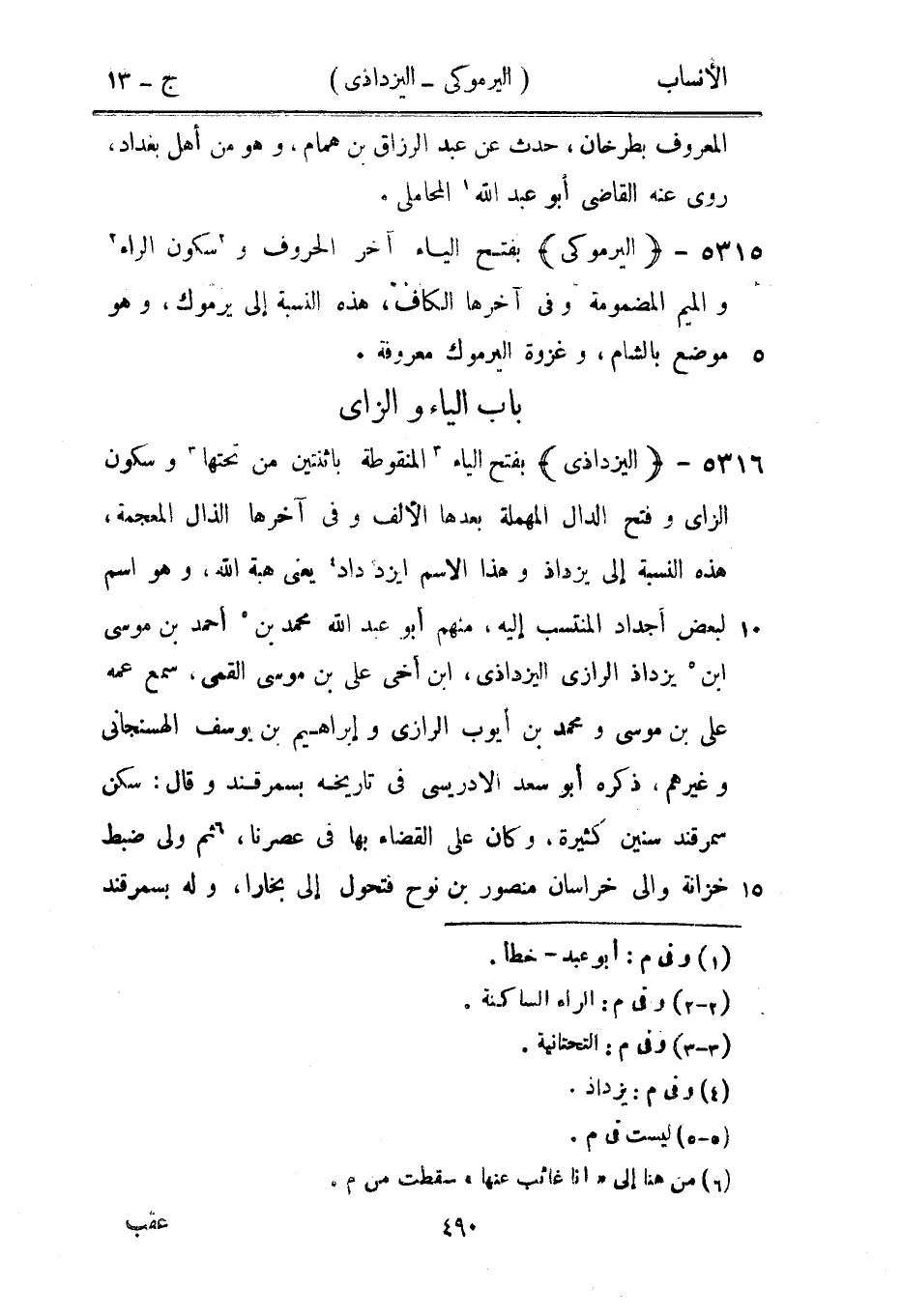 بفتح الياء آخر الحروف و [2] سكون الراء [2] والميم المضمومة وفي آخرها الكاف، هذه النسبة إلى يرموك، وهو موضع بالشام، وغزوة اليرموك معروفة.