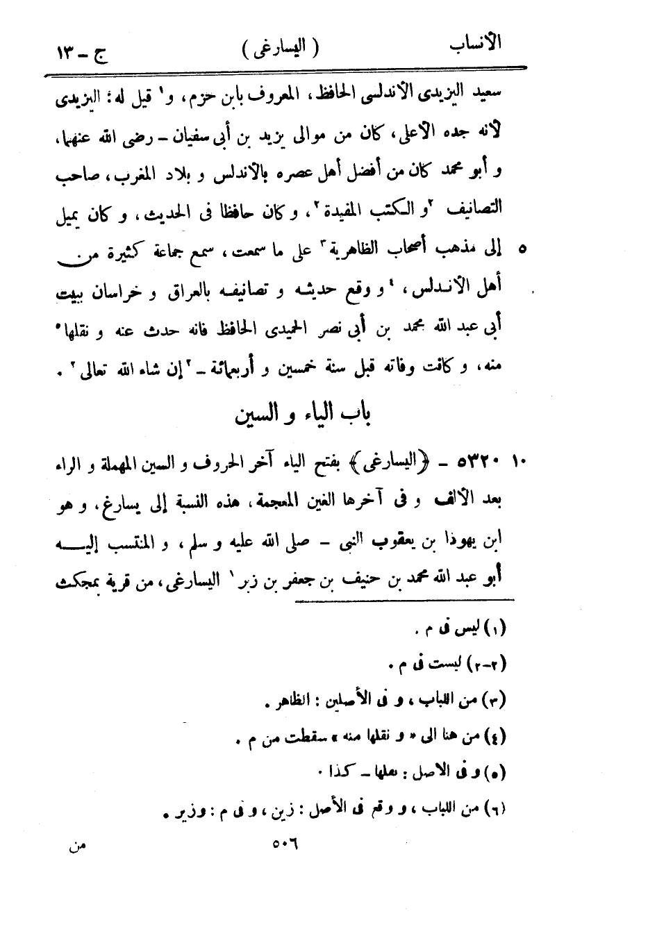 بفتح الياء آخر الحروف والسين المهملة والراء بعد الألف وفي آخرها الغين المعجمة، هذه النسبة إلى يسارغ، وهو ابن يهودا بن يعقوب النبي- صلى الله عليه وسلم، والمنتسب إليه أبو عبد الله محمد بن حنيف بن جعفر بن زبر [6] اليسارغى، من قرية بمجكث