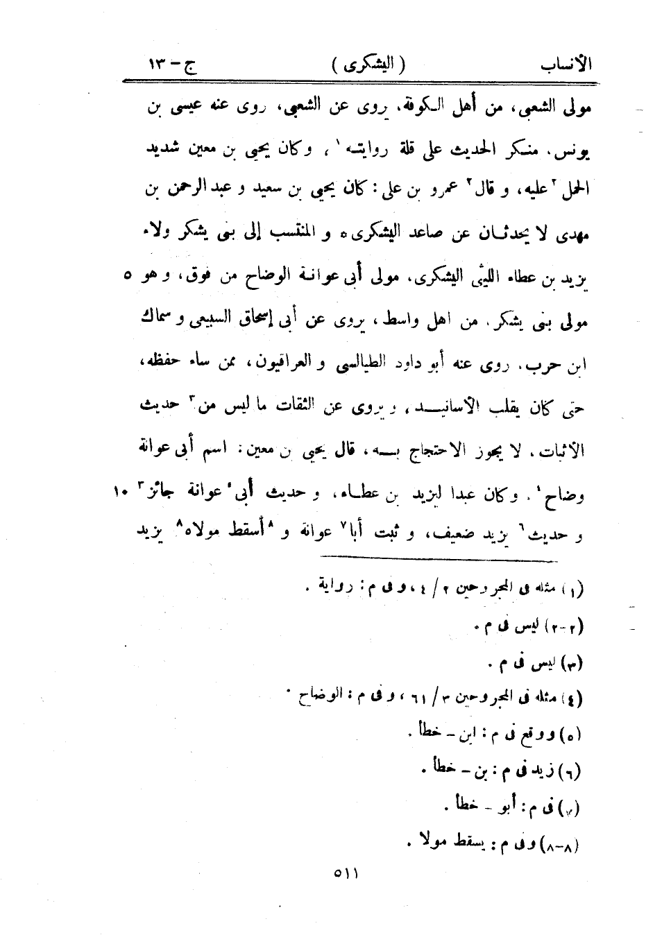 مولى الشعبي، من أهل الكوفة، يروى عن الشعبي، روى عنه عيسى بن يونس، منكر الحديث على قلة روايته [1] ، وكان يحيى بن معين شديد الحمل [2] عليه، وقال [2] عمرو بن على: كان يحيى بن سعيد وعبد الرحمن بن مهدي لا يحدثان عن صاعد اليشكري والمنتسب إلى بنى يشكر ولاء يزيد بن عطاء الليثي اليشكري، مولى أبى عوانة الوضاح من فوق، وهو مولى بنى يشكر، من أهل واسط، يروى عن أبى إسحاق السبيعي وسماك ابن حرب، روى عنه أبو داود الطيالسي والعراقيون، ممن ساء حفظه، حتى كان يقلب الأسانيد، ويروى عن الثقات ما ليس من [3] حديث الأثبات، لا يجوز الاحتجاج به، قال يحيى بن معين: اسم أبى عوانة وضاح [4] ، وكان عبدا ليزيد بن عطاء، وحديث أبى [5] عوانة جائز [3] وحديث [6] يزيد ضعيف، وثبت أبا [7] عوانة و [8] أسقط مولاه [8] يزيد