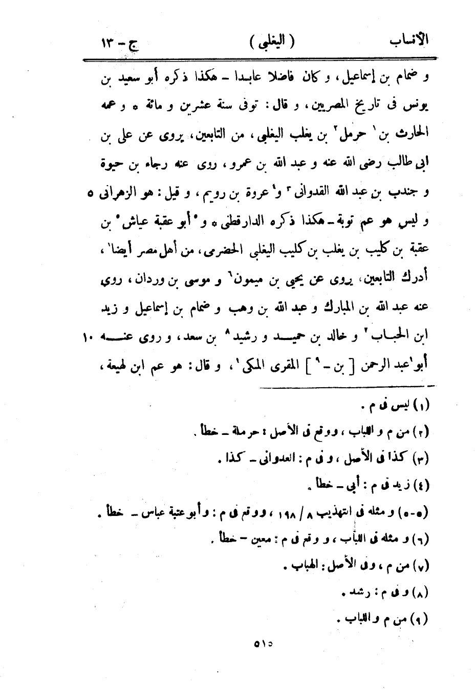 [2] من م واللباب، ووقع في الأصل: حرملة- خطأ.