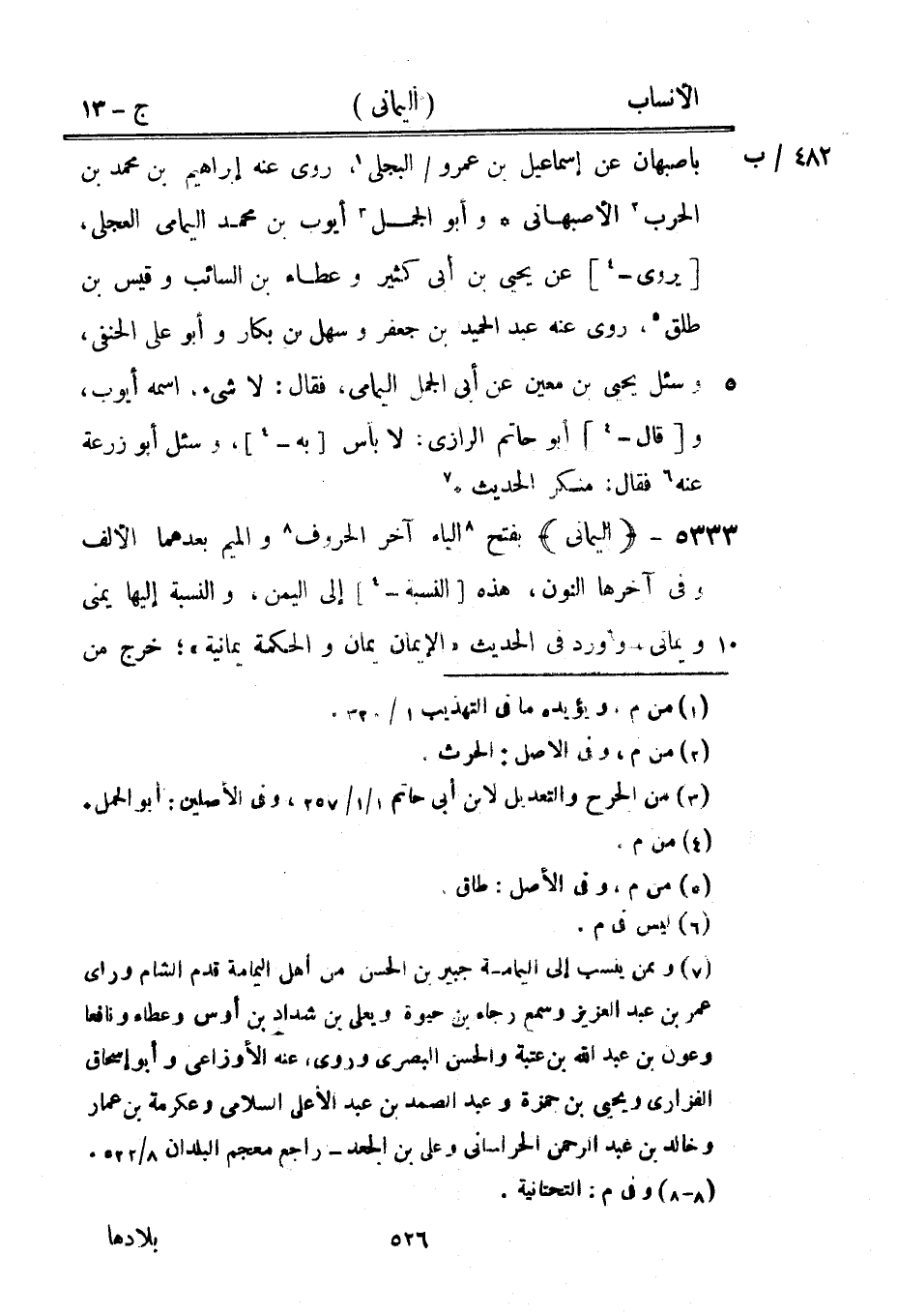 بفتح [8] الياء آخر الحروف [8] والميم بعدهما الألف وفي آخرها النون، هذه [النسبة-[4]] إلى اليمن، والنسبة إليها يمنى ويماني، و [6] ورد في الحديث «الإيمان يمان والحكمة يمانية» ، خرج من