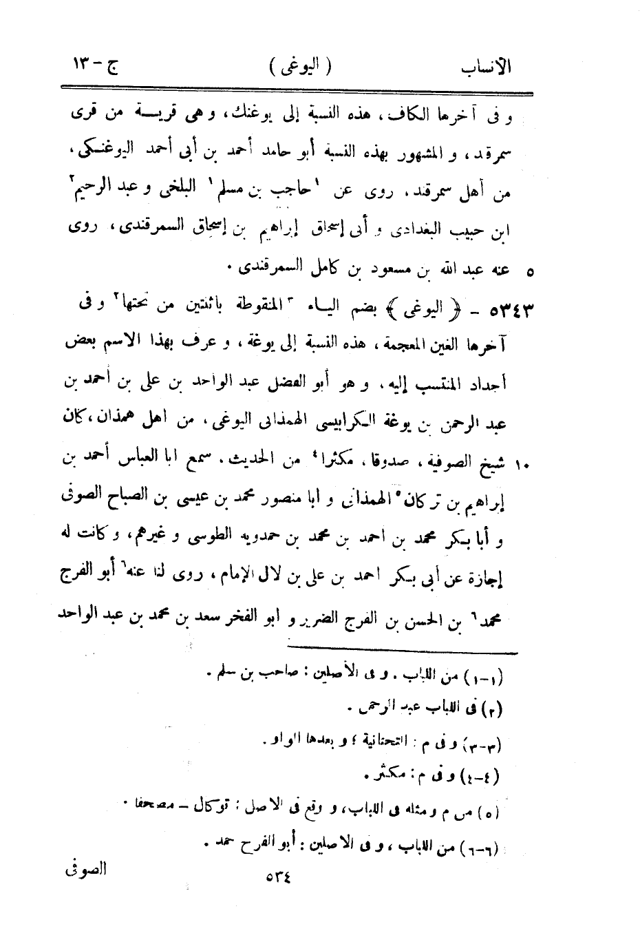 بضم الياء [3] المنقوطة باثنتين من تحتها [2] وفي آخرها الغين المعجمة، هذه النسبة إلى يوغة، وعرف بهذا الاسم بعض أجداد المنتسب إليه، وهو أبو الفضل عبد الواحد بن على بن أحمد بن عبد الرحمن بن يوغة الكرابيسي الهمذانيّ اليوغى، من أهل همذان، كان شيخ الصوفية، صدوقا، مكثرا [4] من الحديث، سمع ابا العباس أحمد بن إبراهيم بن تركان [5] الهمذانيّ وابا منصور محمد بن عيسى بن الصباح الصوفي وأبا بكر محمد بن أحمد بن محمد بن حمدويه الطوسي وغيرهم، وكانت له إجازة عن أبى بكر احمد بن على بن لال الإمام، روى لنا عنه [6] أبو الفرج محمد [6] بن الحسن بن الفرج الضرير وأبو الفخر سعد بن محمد بن عبد الواحد
