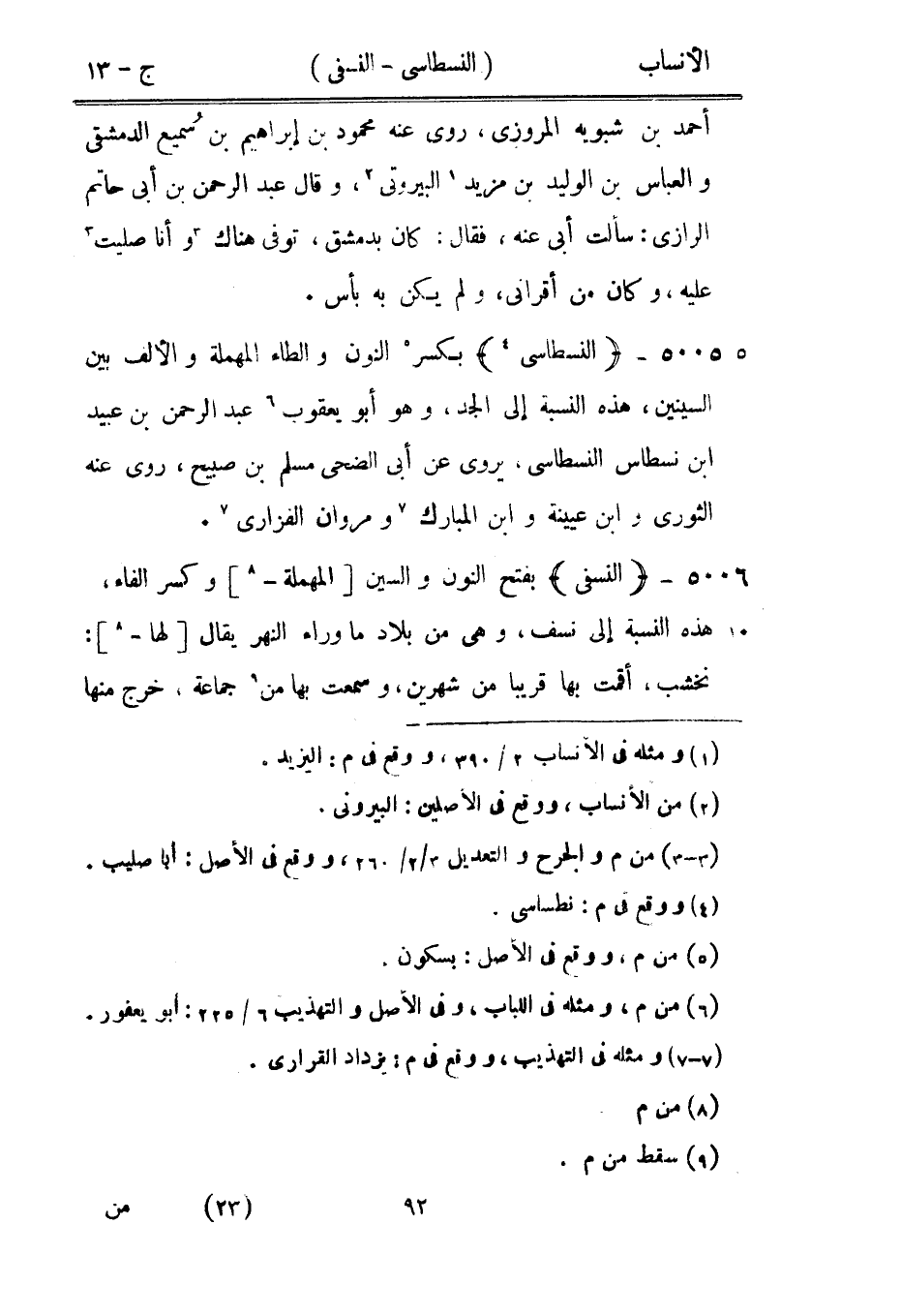 بكسر [5] النون والطاء المهملة والألف بين السينين، هذه النسبة إلى الجد، وهو أبو يعقوب [6] عبد الرحمن بن عبيد ابن نسطاس النسطاسى، يروى عن أبى الضحى مسلم بن صبيح، روى عنه الثوري وابن عيينة وابن المبارك [7] ومروان الفزاري [7] .
