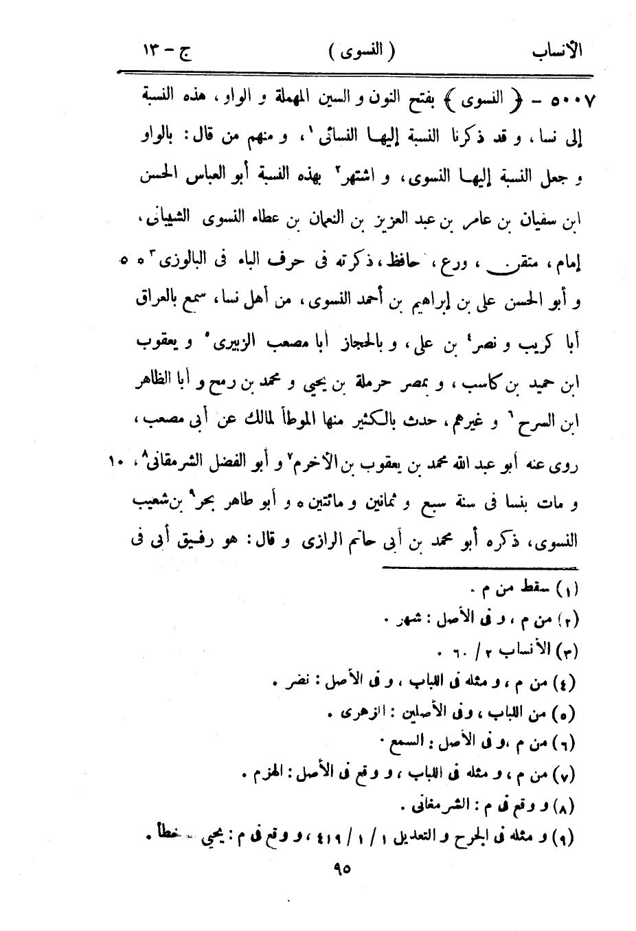 بفتح النون والسين المهملة والواو، هذه النسبة إلى نسا، وقد ذكرنا النسبة إليها النسائي [1] ، ومنهم من قال: بالواو وجعل النسبة إليها النسوي، واشتهر [2] بهذه النسبة أبو العباس الحسن ابن سفيان بن عامر بن عبد العزيز بن النعمان بن عطاء النسوي الشيباني، إمام، متقن، ورع، حافظ، ذكرته في حرف الباء في البالوزى [3] وأبو الحسن على بن إبراهيم بن أحمد النسوي، من أهل نسا، سمع بالعراق أبا كريب ونصر [4] بن على، وبالحجاز أبا مصعب الزبيري [5] ويعقوب ابن حميد بن كاسب، وبمصر حرملة بن يحيى ومحمد بن رمح وأبا الظاهر ابن السرح [6] وغيرهم، حدث بالكثير منها الموطأ لمالك عن أبى مصعب، روى عنه أبو عبد الله محمد بن يعقوب بن الأخرم [7] وأبو الفضل الشرمقانى [8] ، ومات بنسا في سنة سبع وثمانين ومائتين وأبو طاهر بحر [9] بن شعيب النسوي، ذكره أبو محمد بن أبى حاتم الرازيّ وقال: هو رفيق أبى في