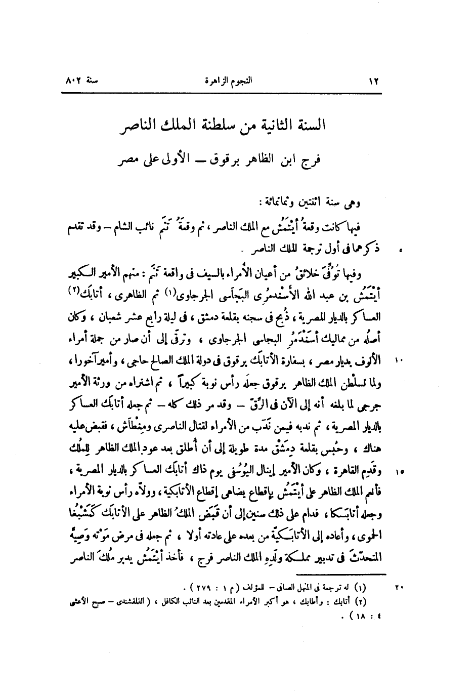 السنة الثانية من سلطنة الملك الناصر فرج ابن الظاهر برقوق- الأولى على مصر وهى سنة اثنتين وثمانمائة: