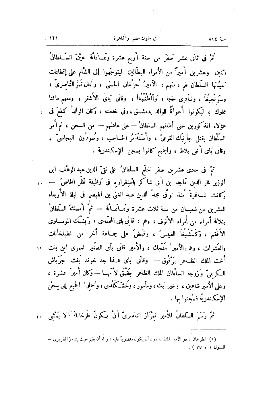 ثمّ رسم السّلطان للأمير تمراز الناصرىّ أن يكون طرخانا «1» لا يمشى