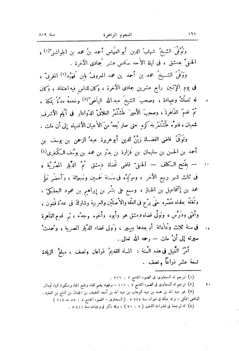 وتوفّى الشيخ شهاب الدين أبو العبّاس أحمد بن محمد بن الجواشنىّ «1» ، الحنفىّ بدمشق، فى ليلة الأحد سادس عشر جمادى الآخرة.