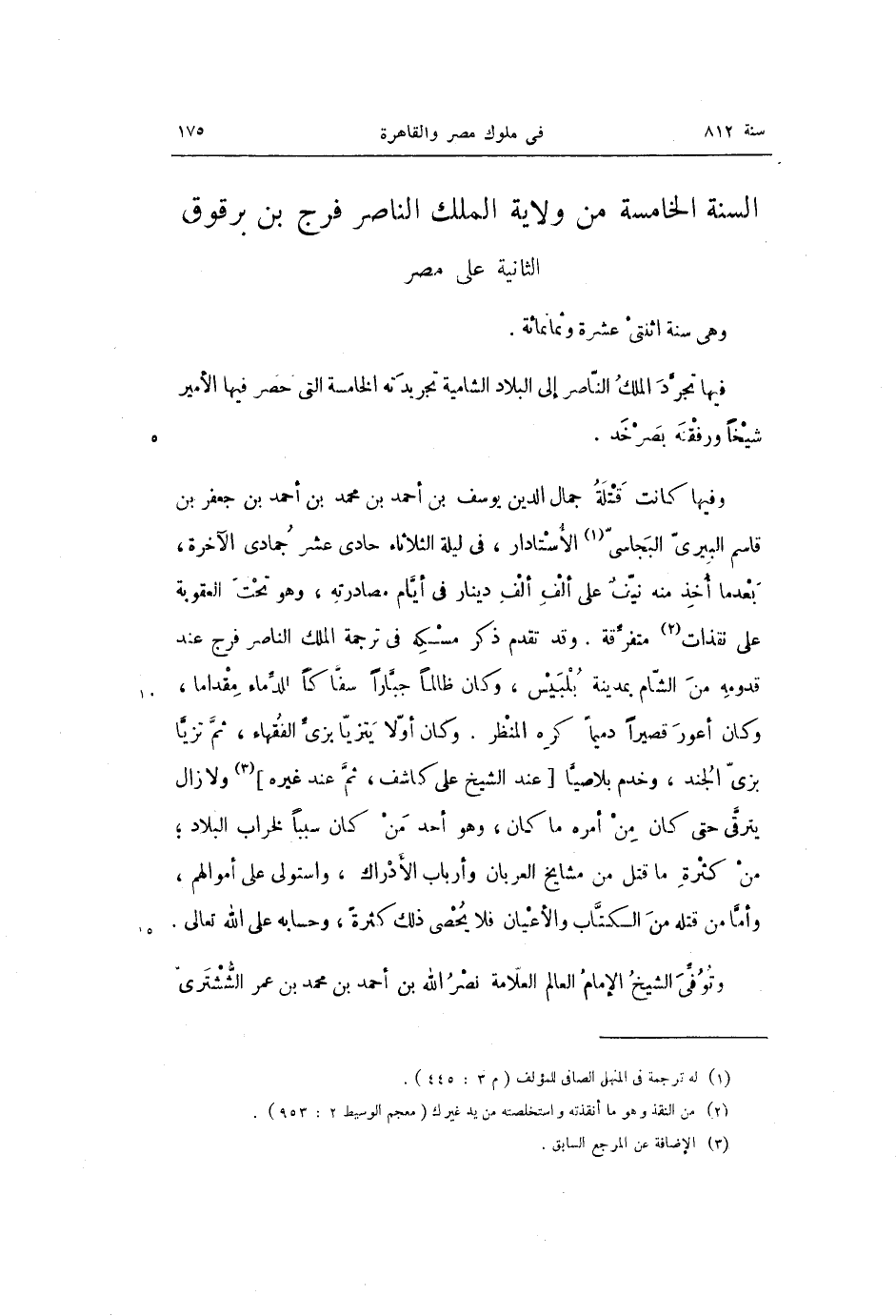 السنة الخامسة من ولاية الملك الناصر فرج بن برقوق الثانية على مصر وهى سنة اثنتى عشرة وثمانمائة.