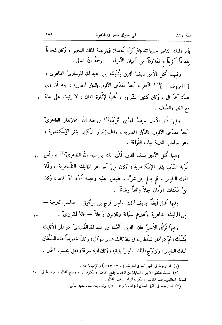 وفيها قتل أيضا بسيف الملك الناصر فرج بن برقوق- صاحب الترجمة- من المماليك الظاهرية وغيرهم ستمائة وثلاثون رجلا- قاله المقريزىّ.