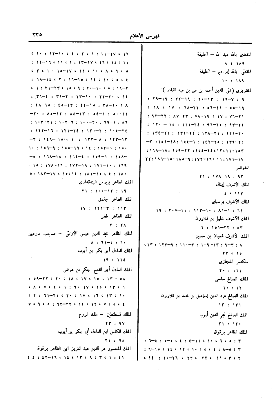 الملك الأشرف برسباى 61: 1- 81: 10- 113: 11- 207: 19