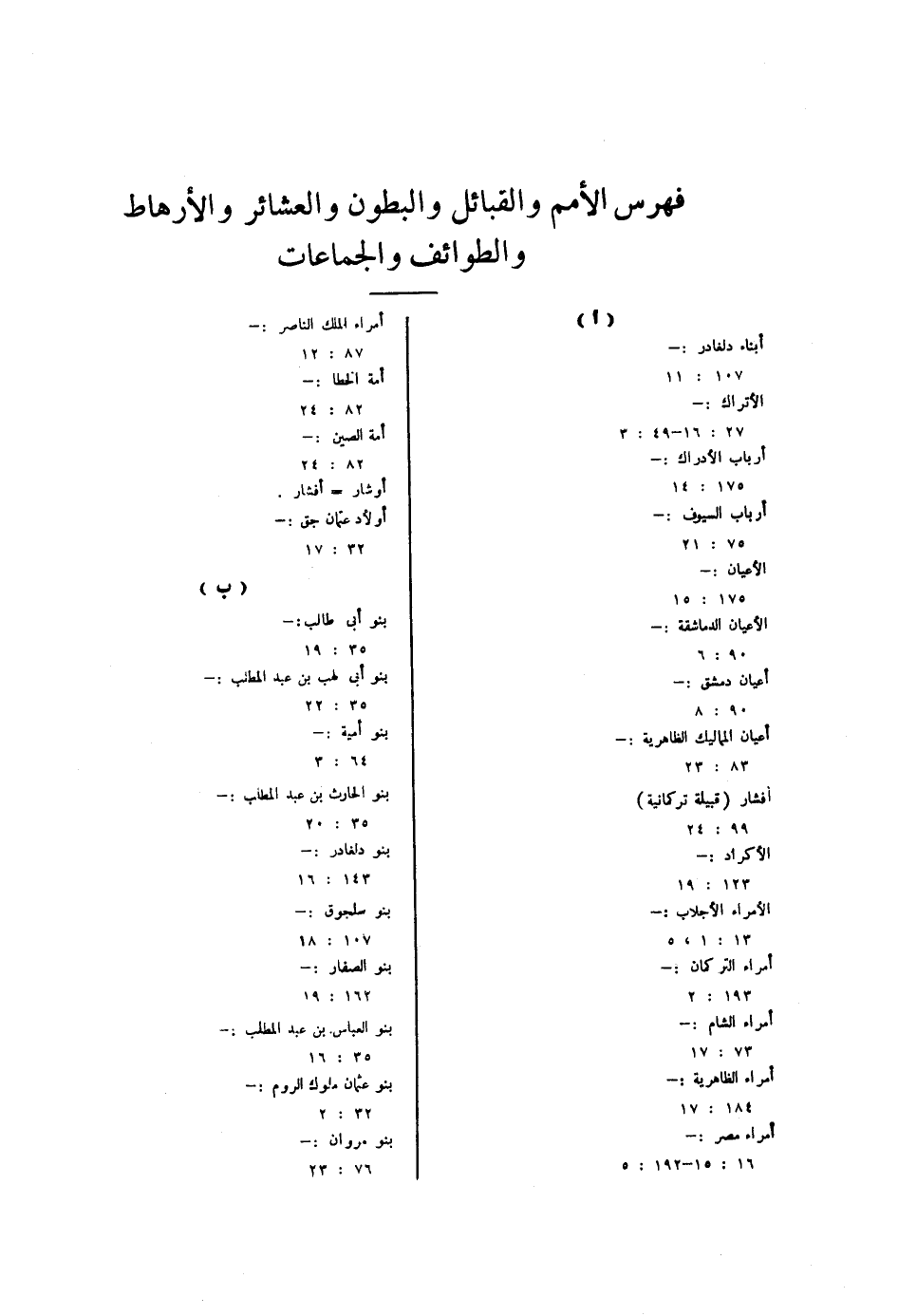 فهرس الأمم والقبائل والبطون والعشائر والأرهاط والطوائف والجماعات