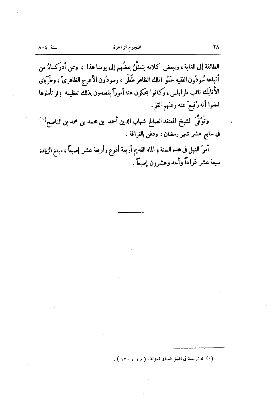 أمر النيل فى هذه السنة؛ الماء القديم أربعة أذرع وأربعة عشر إصبعا، مبلغ الزيادة سبعة عشر ذراعا وأحد وعشرون إصبعا.