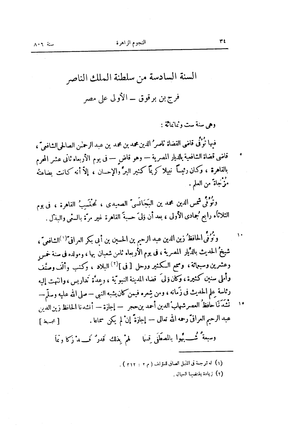 السنة السادسة من سلطنة الملك الناصر فرج بن برقوق- الأولى على مصر وهى سنة ست وثمانمائة: