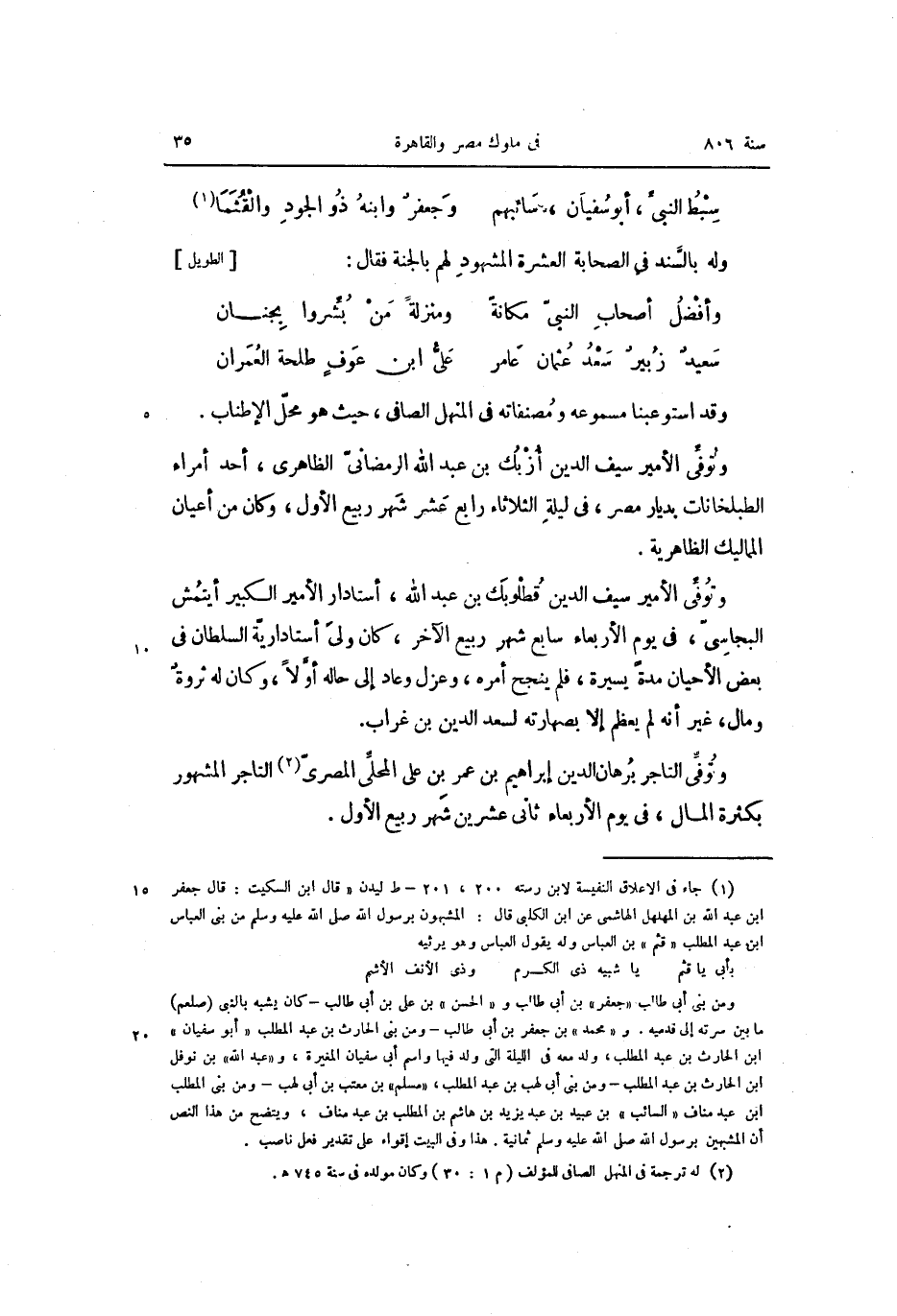 سبط النّبيّ، أبو سفيان، سائبهم ... وجعفر وابنه ذو الجود والقثما «1»
