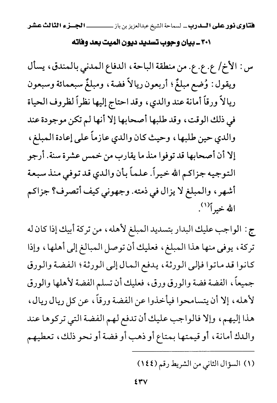 301 - بيان وجوب تسديد ديون الميت بعد وفاته