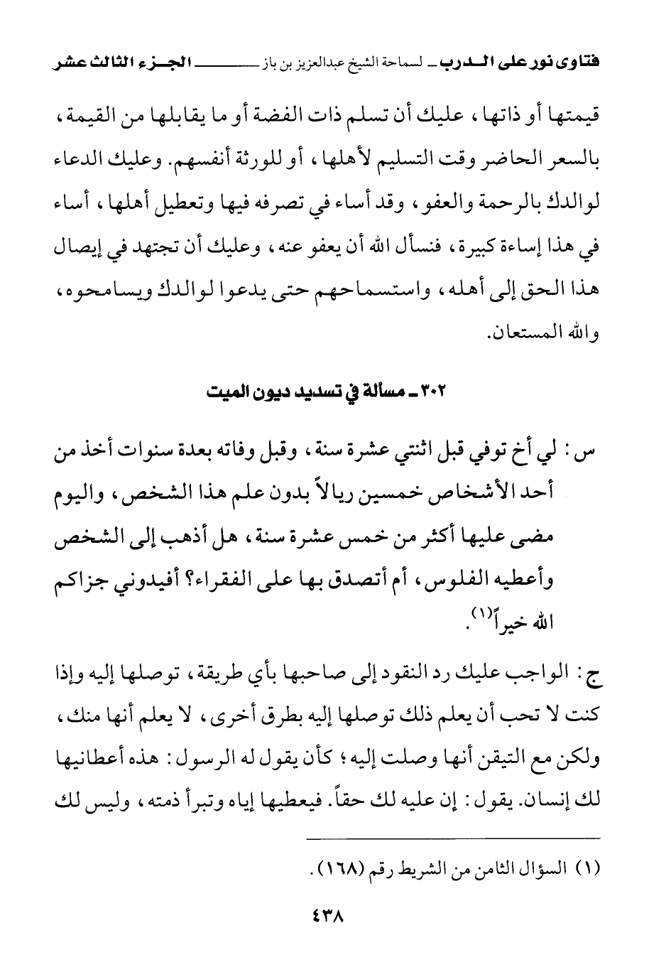 302 - مسألة في تسديد ديون الميت