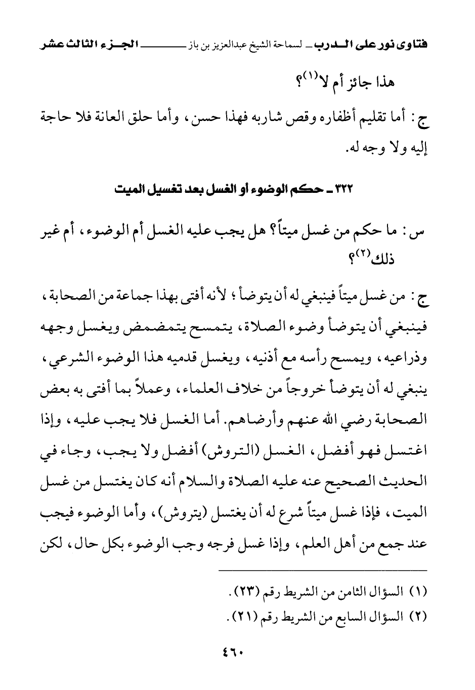 كتاب فتاوى نور على الدرب لابن باز بعناية الشويعر (اسم الجزء: 13)