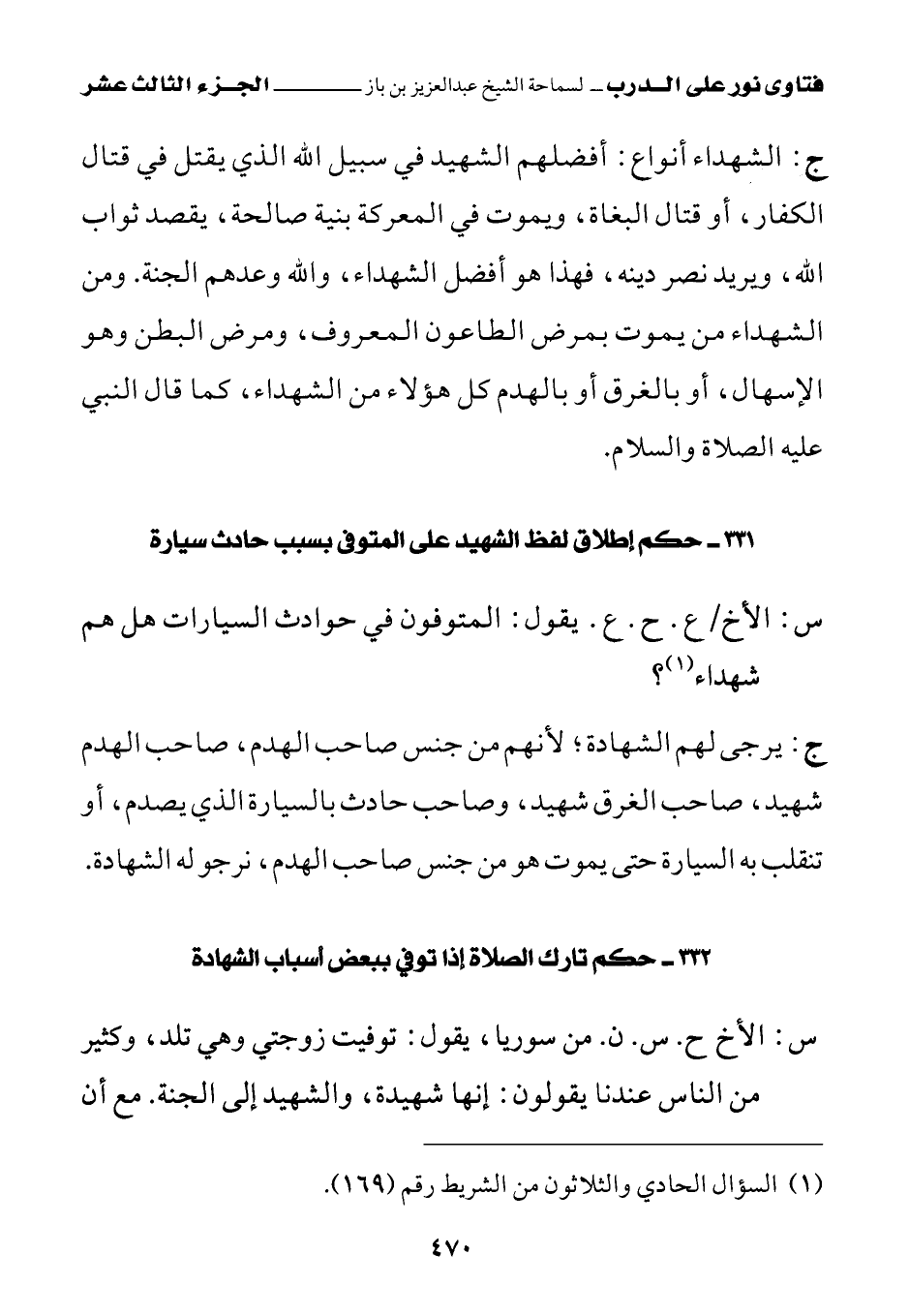 331 - حكم إطلاق لفظ الشهيد على المتوفى بسبب حادث سيارة