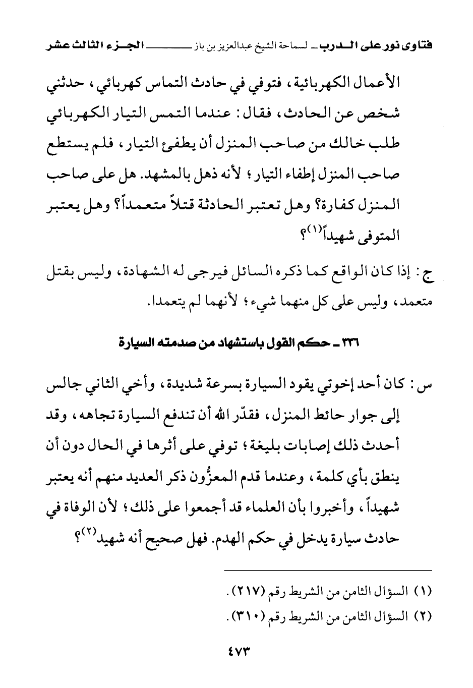 336 - حكم القول باستشهاد من صدمته السيارة